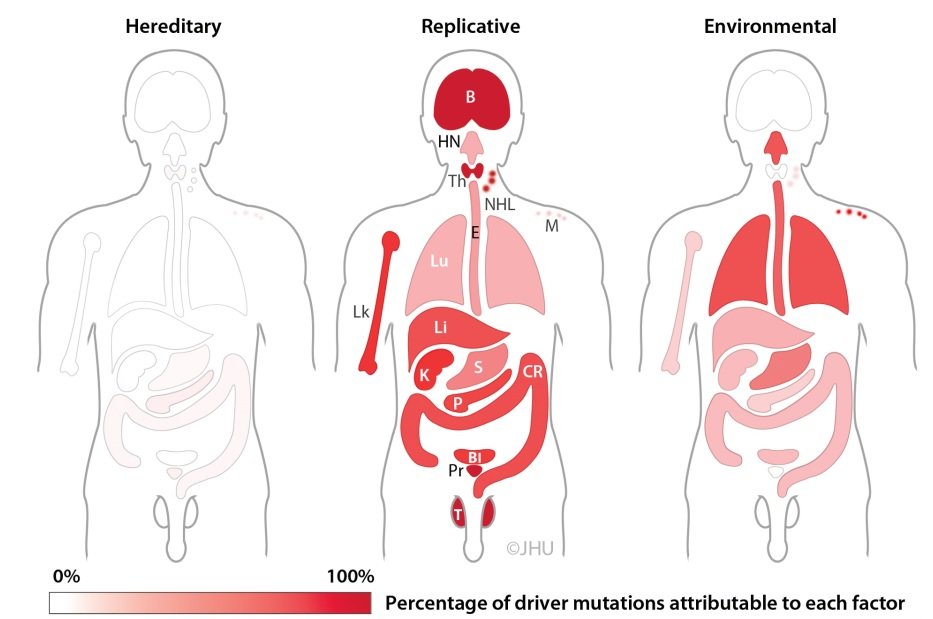 존스홉킨스대의 크리스티안 토마세티 박사 등 연구팀은 32종의 암 게놈 염기서열과 역학 자료를 분석한 결과