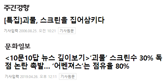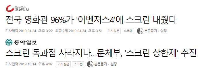 그러다보니 스크린 독과점에 대한