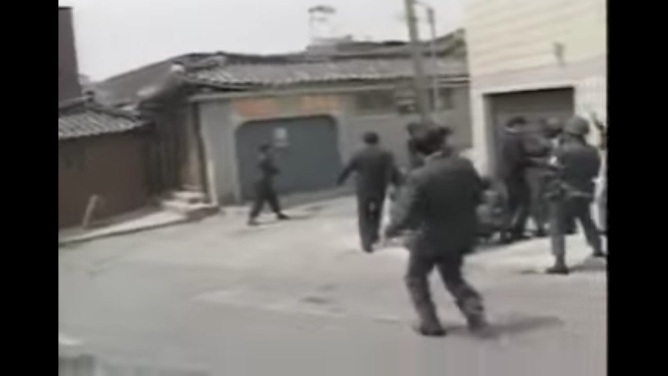 지나는 시민과 차량에게 난사및 첫번째 수류탄 (훈련용) 투척