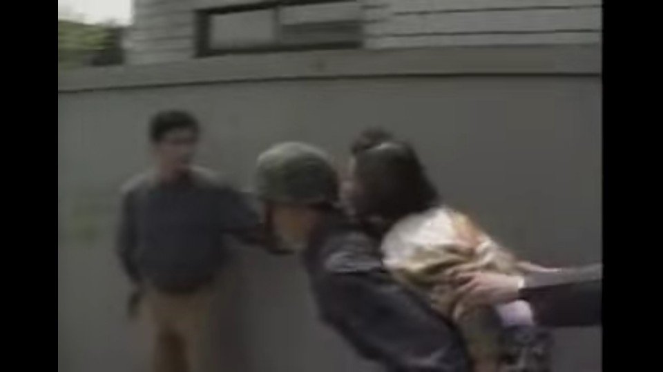 지나는 어린이를 다시금 인질로 한채 봉고차 탈취 봉고차안에서 세번째 수류탄(살상용) 투척 / 위 사진의 봉고차가 문제의 봉고차