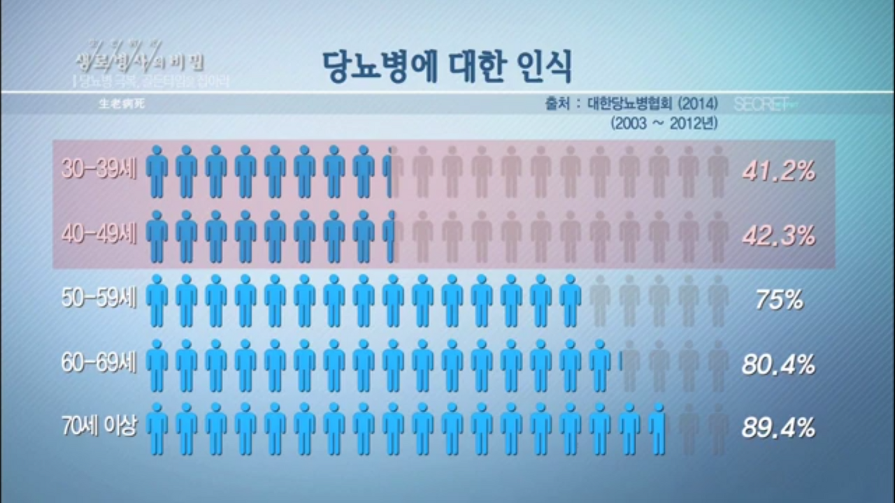 0~40대는 60%가 자신이 당뇨위험에 처해 있다는걸 인삭하지 못한다고해