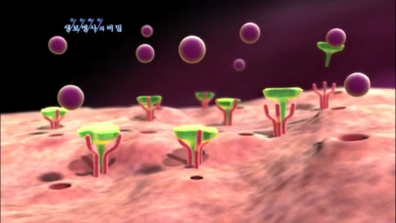 초록색 깔대가 인슐린이야. 포도당은 인슐린의 유도에 의해 세포로 들어가 에너지로 활용된다고 해.