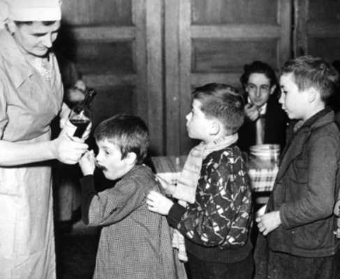 <대구 간 기름을 줄 서서 받아먹는 영국인 아이들>