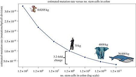 더 많은 세포를 가지고 있거나 더 오래 사는 동물들이 더 많은 세포분열을 할 것이므로,