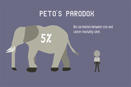 (인간의 암 치사율이 11~25%인데 반해 코끼리는 5% 미만)