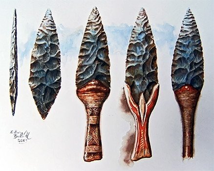 아래 처럼 생긴 돌촉을 만들어서 장대에 끼워서 맘모스의 옆구리를 찌른거지
