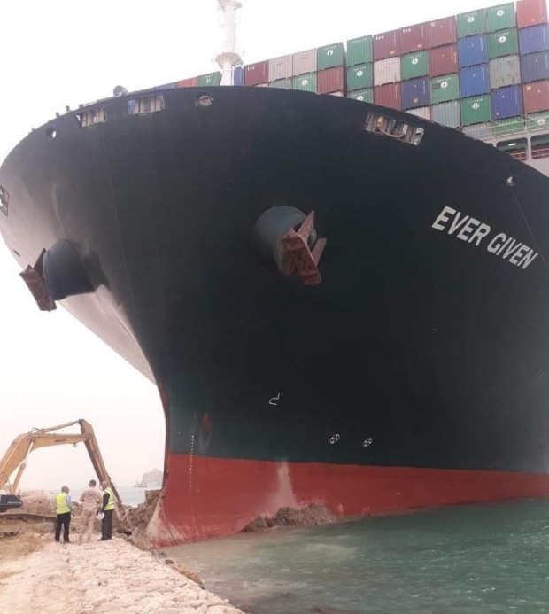 해운물류기업 GAC는 "진입하던 중 갑작스러운 강풍을 맞아 수로를 이탈했고, 북쪽으로 방향을 틀다가 좌초한 것으로 보인다."라고 밝혔다. 이집트군이 예인선과 굴착기로 끌어보러 시도했으나 전부 실패했다.