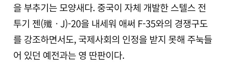2. 그 국방비로 스텔스 전투기 젠-20 100대 실전배치 해 주변국 위협할 예정 임